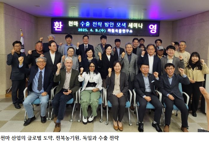 국내·외 전문가 한자리에…천마 산업의 현재와 미래 논의 현장행정으로 본 수출 가능성…재배지부터 가공시설까지 점검 천마 수출 확대 및 산업화 전략을 마련하기 위한 국제세미나와 재배 현장을 둘러보는 행사가 전북에서 열렸다. 기후위기와 고령화로 농업의 미래가 위협받는 가운데, 지역특화작목의 고부가가치화를 통한 농가소득 증대와 글로벌 진출을 위한 본격적인 논의가 시작됐다. 전북특별자치도농업기술원(원장 최준열)과 (사)무주천마사업단(단장 김진만), AGRO&CT(대표 심철무)는 4월 9일부터 10일까지 이틀간 ‘천마 수출 전략 방안 모색 세미나 및 현장행정’을 자원식물연구소(약초시험장)와 무주 일대에서 개최했다. 본 행사에는 천마 기능성에 대해 상당한 관심을 가진 독일 기센대학교 교수와 Vimion사 CEO를 비롯해 국내 천마 전문가, 농협, 가공업체, 스마트팜 운영자 등 30여 명이 참석했다. 1일차인 9일에는 한국과 독일의 약초 산업 동향과 천마의 기능성 식품화 전략, 글로벌 시장 진출 가능성을 주제로 세미나가 진행됐다. 김창수 박사(전북농기원)는 ‘천마의 연중생산 기술과 지역특화작목 육성 성과’를, 권강범 대표(일원바이오)는 ‘식약처 승인 천마추출물의 인지기능 개선 효과’를 발표하며 기능성 소재로서의 우수성을 강조했다. 독일 Vimion사 CEO인 Shafiee 박사는 ‘식물성 건강보조식품의 글로벌 트렌드와 독일 시장의 가능성’을 제시하며 협업의 여지를 열었다. 2일차에는 봄천마 수확지, 농협 수매현장, GMP 가공업체 및 스마트팜 시설을 방문하며 수출을 위한 원료 안정성과 공급망 구축 상황을 점검했다. 특히 천마 스마트팜 구축 사례와 고부가가치 제품화 가능성이 참가자들의 큰 관심을 끌었다. 김주희 자원식물연구소장은 “천마는 인지기능 개선 등 기능성을 입증받은 전략 작물로, 해외 진출 가능성이 매우 높다”며 “농업기술원은 지역 산업화 기반 조성과 함께 글로벌 협력체계를 지속 확대해 나가겠다”고 밝혔다. 총 의견수 0개 등록된 댓글이 없습니다.