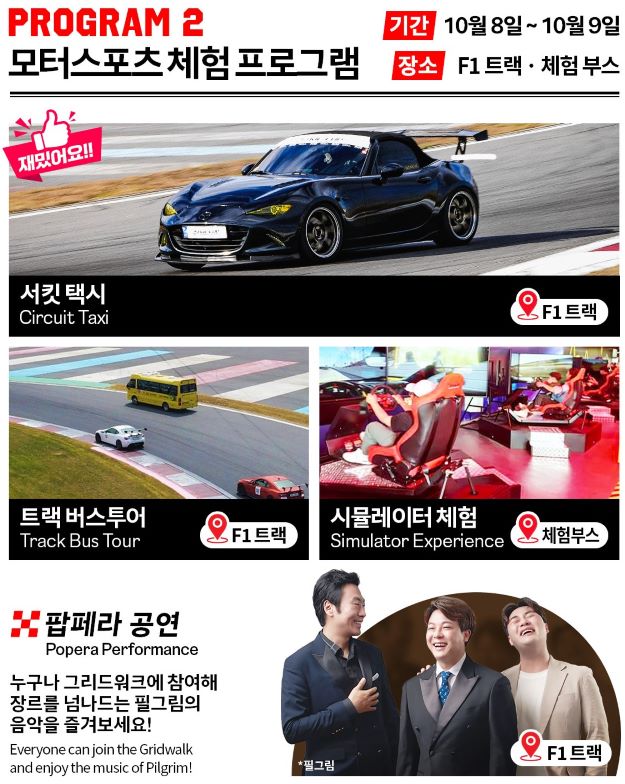 전남도, 영암 국제자동차경주장서 12일까지 서킷 택시·공연·체험·챔피언십 대회 등 다채 전라남도와 ㈜코리아모빌리티그룹은 모터스포츠 대중화를 위해 레이싱 선수, 일반 라이더와 가족 단위 관람객까지 함께 즐길 수 있는 ‘2025 전남 모터 페스티벌’을 8일부터 12일까지 영암 국제자동차경주장에서 개최한다고 밝혔다. 8~9일에는 ‘스포츠카 드라이빙 챌린지’라는 주제로 참가차량이 F1트랙를 주행하며, 방문객은 스포츠카 차량에 동승하는 ‘서킷 택시’로 레이싱을 간접 체험할 수 있다. 트랙 출발선에 도열된 참가차량과 포토타임을 즐길 수 있는 그리드워크가 재현되고, 팝페라 가수 공연을 동시 관람하는 색다른 행사가 진행된다. 자녀를 동반한 가족이 함께 참여할 수 있는 프로그램도 준비됐다. 레이싱 시뮬레이터 체험, 마리모 어항 만들기, 국화와 다육식물 심기, 페이스 페인팅, 캐리커처, 타로카드, 아이들의 상상력을 키워주는 만들기 체험까지 모두 무료로 운영된다. 또한 레이스 차량의 정비 공간으로 쓰이던 피트 구역을 정원 전시장으로 구성하고, VIP전용 공간으로 사용되던 패독클럽을 개방해 실내 휴식도 취할 수 있다. 10일에는 일반 바이크 라이더들을 대상으로 전문 선수들의 이론교육이 진행된다. 서킷 주행을 통해 안전한 주행 기술을 습득할 수 있으며, 모터스포츠 저변 확대와 건전한 바이크 문화형성에 긍정적인 영향을 줄 것으로 기대된다. 11~12일에는 상설서킷에서 ‘전 한국로드레이스 챔피언십(AKRC)’ 5라운드 대회가 개최된다. 국내 최고 수준의 모터사이클 선수들이 참여해 박진감 넘치는 경기를 선보일 예정으로, 관람객들은 상설건물 2층 야외 관람석을 이용할 수 있다. 장영철 전남도 기업도시담당관은 “모터스포츠는 대중과 함께할 때 가장 큰 가치를 지닌다”며 “이번 행사를 통해 국제자동차경주장이 마니아 뿐만 아니라 대중이 함께 즐기는 공간으로 발전시켜 나가겠다”고 말했다. 자세한 일정 및 안내는 국제자동차경주장 누리집(https://koreacircuit.kr) 및 인스타그램(@kic.official_korea)을 통해 확인 할 수 있다. |