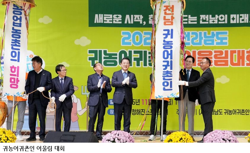 전라남도 귀농·귀촌인 도전 응원·지역 발전 기원 전라남도는 14일 완도 청해진스포츠센터에서 ‘2025년 귀농어귀촌인 어울림대회’를 열어 귀농·귀촌인의 도전을 응원하고 지역 발전을 염원하는 화합과 교류의 장을 마련했다. 전남귀농어귀촌인연합회(회장 김민주)가 주관한 이번 행사는 ‘새로운 시작, 함께 만드는 전남의 미래’를 주제로 열려 전남 귀농·귀촌인과 가족, 관계 공무원 등 600여 명이 참석했다. 행사는 식전 색소폰과 가야금 공연으로 문을 열었다. 개회식은 김영록 전남도지사와 신우철 완도군수, 김양훈 완도군의회 의장, 신의준 전남도의회 의원, 귀농어귀촌인연합회 관계자 등이 참석한 가운데 우수 귀농어귀촌인 도지사표창, 퍼포먼스, 기념촬영 순으로 이어졌다. 시상식에서는 김지혜 여수시 귀농어귀촌협회 사무국장 등 5명에게 도지사 표창을, 이성상 완도군 귀농어귀촌협회장 등 6명에게 전국 및 도 연합회장 공로패가 각각 수여됐다. 특히 귀농어귀촌인의 도전과 전남도의 발전을 함께 염원하는 의미로, 주요 내빈이 무대에 올라 ‘농업·농촌의 희망’, ‘전남 귀농어귀촌인’, ‘OK, NOW 대한민국 AI 수도’라는 문구가 적힌 세 개의 박을 터트리며 새로운 출발과 전남의 도약을 기원했다. 김영록 지사는 격려사를 통해 “귀농어·귀촌은 전남의 인구 활력과 지역경제를 이끄는 새로운 동력”이라며 “전남에 정착한 보람을 느끼도록 적극적으로 지원하겠다”고 말했다. 이어 “글로벌 AI 데이터센터 유치 등 전남에 생긴 기회를 잘 활용해 전남을 더욱 발전시킴으로써 앞으로도 더 많은 분이 전남으로 오도록 하겠다”고 덧붙였다. 김민주 전남귀농어귀촌인연합회장은 “회원 간 교류와 협력을 통해 전남 귀농귀촌의 새로운 미래를 열자”며 “새로운 삶의 터전인 지역사회 발전을 위해 최선을 다하겠다”고 말했다. 행사장에는 시군 귀농귀촌인이 직접 생산한 농특산물 전시 부스가 운영돼 다양한 지역 농산품이 소개됐으며, 참석자는 전시장을 함께 둘러보고 지역 간 교류의 시간을 보냈다. 또 ‘어울림 한마당’에서는 귀농어귀촌인의 재능공연과 장기자랑이 펼쳐져 웃음과 화합의 분위기 속에 행사가 마무리됐다. (사)전남도귀농어귀촌인연합회는 2016년 설립돼 현재 4천751명의 회원이 가입했다. |