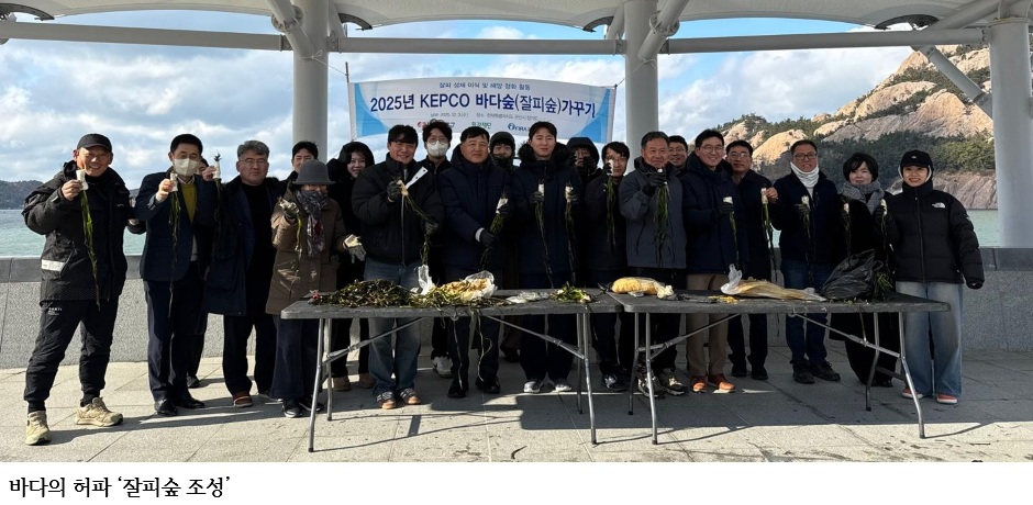 민간·지자체·NGO와 함께 바다생태계 복원 및 탄소중립에 앞장서다 한국수산자원공단(이사장 김종덕) 서해본부(본부장 양정규)는 12월 3일 전북특별자치도 군산시 장자도 해역에서 한국전력공사, 어업인, 전북특별자치도, 환경재단과 함께 바다숲 복원의 일환으로 잘피 이식 체험행사를 진행하였다.