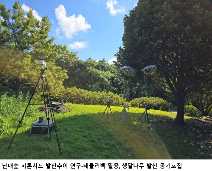์ฐ๋ฆผ์ฐ๊ตฌ์, ํฉ์น ยท์๋ฌยท๋ถ์๋๋ฌด 2๋ ๊ฐ ์ฐ๊ตฌยท๋ถ์ ๊ฒฐ๊ณผ ๋ํธ๋ฅธ ์์ข โฆํญ์ผยทํญ์๋ ๋ฅด๊ธฐยทํฅ๊ท ๋ฌผ์ง 4๊ณ์ ๋ฐ์ฐ ์ ๋ผ๋จ๋์ฐ๋ฆผ์ฐ๊ตฌ์์ 2025๋ ๊น์ง 2๋ ๋์ ์ง์ญ ๋๋์ฒ์์ ํผํค์น๋(NVOC) ๋ฐ์ฐ์ถ์ด๋ฅผ ๋ถ์ํ ๊ฒฐ๊ณผ ํฉ์น , ์๋ฌ, ๋ถ์๋๋ฌด, 3์์ข ๋ชจ๋ ๊ฒจ์ธ์๋ ํญ์ผยทํญ์๋ ๋ฅด๊ธฐยทํญ๊ท ๋ฌผ์ง์ ๋ง์ด ๋ฐ์ฐํ๋ ๊ฒ์ ํ์ธํ๋ค๊ณ ๋ฐํ๋ค. ํผํค์น๋๋ ์๋ฌผ์ด ๋ฐ์ฐํ๋ ์ฒ์ฐ ํ๋ฐ์ฑ ์ ๊ธฐํํฉ๋ฌผ(Natural Volatile Organic Compounds)๋ก ํญ๊ท , ํผ๋ถ์งํ ๊ฐ์ , ๋ฉด์ญ๋ ฅ ์ฆ์ง ํจ๊ณผ๊ฐ ์๋ค. ์ฐ๋ฆผ์ด ์ธ๋ฅ์๊ฒ ์ ๊ณตํ๋ ํฐ ํํ ์ค ํ๋๋ค. ์ด๋ฒ ์ฐ๊ตฌ๋ ๋๋์์ข ์ธ ํฉ์น ๋๋ฌด, ์๋ฌ๋๋ฌด, ๋ถ์๋๋ฌด๋ฅผ ๋์์ผ๋ก ๋งค์ ํ์ฅ์์ ํ ๋ค๋ฌ๋ฐฑ(Tedlar bag)์ ํ์ฉํด ํผํค์น๋ ๋ฐ์ฐ ํน์ฑ์ ๋ถ์ํ๋ค. ํ ๋ค๋ฌ๋ฐฑ์ ์ด์ฉํ ํผํค์น๋ ์ธก์ ๋ฐฉ๋ฒ์ ์๊ณผ ๊ฐ์ง์ ์ง์ ํ ๋ค๋ฌ๋ฐฑ์ ์์ ๋๋ฌด๊ฐ ๋ฐ์ฐํ๋ ์ฑ๋ถ์ ํฌ์งํ๋ ๋ฐฉ๋ฒ์ด๋ค. ํ ๋ค๋ฌ๋ฐฑ์ผ๋ก ํฌ์งํ ๊ณต๊ธฐ๋ ์คํ์ฅ๋น(ATD/GC-MS)๋ฅผ ํ์ฉํด 32์ข ์ ํผํค์น๋ ์ฑ๋ถ์ ๋ถ์ํ๋ค. ๊ทธ ๊ฒฐ๊ณผ ์ฌ๋ฆ์ฒ ์ ๊ฐ์ฅ ๋ง์ ์์ธ 460ng์ ํผํค์น๋๋ฅผ ๋ฐ์ฐํ์ผ๋ฉฐ, ๊ฐ์์ฒ ๊ณผ ๋ด์ฒ , ๊ฒจ์ธ์ฒ ์ ๊ฑฐ์ ์ ์ฌํ ์์ธ 190.8ng, 164.7ng, 154.3ng์ผ๋ก ๋ถ์๋๋ค. ์ด๋ ๋ํธ๋ฅธ ๋๋์ฒ์ ํน์ฑ์ผ๋ก ๊ธฐ์จ์ด ๋ฎ์ ๊ฒจ์ธ์ฒ ์๋ ์ผ์ ๋์ ํผํค์น๋๋ฅผ ๋ฐ์ฐํ๋ ๊ฒ์ผ๋ก ํ์ธ๋๋ค. ์์ข ๋ณ๋ก๋ ์๋ฌ๋๋ฌด๋ ๋ด(197.6ng)๊ณผ ๊ฐ์(236.1ng)์ ๋ฐ์ฐ๋์ด ๋์์ผ๋ฉฐ ๋ถ์๋๋ฌด๋ ์ฌ๋ฆ(660.8ng)๊ณผ ๊ฒจ์ธ(247.9ng)์ ๋์๋ค. ํนํ ๋ถ์๋๋ฌด๋ ๋ ์์ข ์ ๋นํด ์ฌ๋ฆ์ฒ ์๋ 1.5โผ2.2๋ฐฐ, ๊ฒจ์ธ์ฒ ์๋ 2.3๋ฐฐ ๋ง์ ์์ ๋ฐ์ฐํ๋ ๊ฒ์ผ๋ก ๋ํ๋ฌ๋ค. ํผํค์น๋ ์ฑ๋ถ๋ณ๋ก๋ ์ํํผ๋จ, ๋ฒ ํํผ๋จ(๋ฉด์ญ๋ ฅ๊ฐํยท์คํธ๋ ์ค๊ฐ์), ๋ฆฌ๋๋กค(ํญ๊ท ยทํญ์ผ), ๋ฐ๋ ์ผ(ํญ์๋ ๋ฅด๊ธฐ) ์ฑ๋ถ์ด ๋ง์๋ค. ์ ๋จ์ง์ญ ๋๋์ฒ ๋ถํฌ๋ฉด์ ์ ์ ๊ตญ 1๋ง 6์ฒ421ha ์ค 62%(1๋ง 102ha)๋ฅผ ์ฐจ์งํ๊ณ ์๋ค. ํฉ์น ๋๋ฌด, ๋ถ๊ฐ์๋๋ฌด, ๋๋ฐฑ๋๋ฌด, ์๋ฌ๋๋ฌด ๋ฑ ํ์ํก์ ๋ฅ๋ ฅ์ด ๋ฐ์ด๋ ์ ๊ตญ ์ต๋ ๋๋์์ข ์์์ง๋ก์ ์๋์๋ชฉ์์ ์ค์ฌ์ผ๋ก ๋ค์ํ ๋๋์์ข ์ด ๋ถํฌํ๊ณ ์๋ค. ์ค๋์ค ์ ๋จ๋์ฐ๋ฆผ์ฐ๊ตฌ์์ฅ์ โํฉ์น ๋๋ฌด, ์๋ฌ๋๋ฌด ๋ฑ ๋๋์๋กํ์ฝ์๊ฐ ๊ฒจ์ธ์๋ ๋ง์ ์์ ํผํค์น๋๋ฅผ ๋ฐ์ฐํจ์ ๋ฐ๋ผ ์์ผ๋ก ์ฐ๋ฆผ์น์ ์ ์ํ๊ด๊ด ์์์ผ๋ก์ ํ์ฉ ๊ฐ์น๊ฐ ๋๋คโ๊ณ ๋งํ๋ค. ์ฐ๋ฆผ์ฐ๊ตฌ์์ ์ ๋จ ์ฐ๋ฆผ ์์ข ์ ๊ณต๊ธฐ์ง ์กฐ์ฌ๋ถ์๋ฟ๋ง ์๋๋ผ ๋์์ฒ์ ๋ฏธ์ธ๋จผ์ง ์ ๊ฐํจ๊ณผ ๊ท๋ช ์ ์ํด ๋ น์ง๋ , ๊ณต์, ์ฃผ๊ฑฐ์ง ๋ฑ ๊ณ ์ ๊ตฌ 6๊ฐ์๋ฅผ ๋์์ผ๋ก ์ค์๊ฐ ๋ฏธ์ธ๋จผ์ง ๋ชจ๋ํฐ๋ง ์ฐ๊ตฌ๋ ํจ๊ปํ๊ณ ์๋ค. ์ด ์๊ฒฌ์ 0๊ฐ ๋ฑ๋ก๋ ๋๊ธ์ด ์์ต๋๋ค.