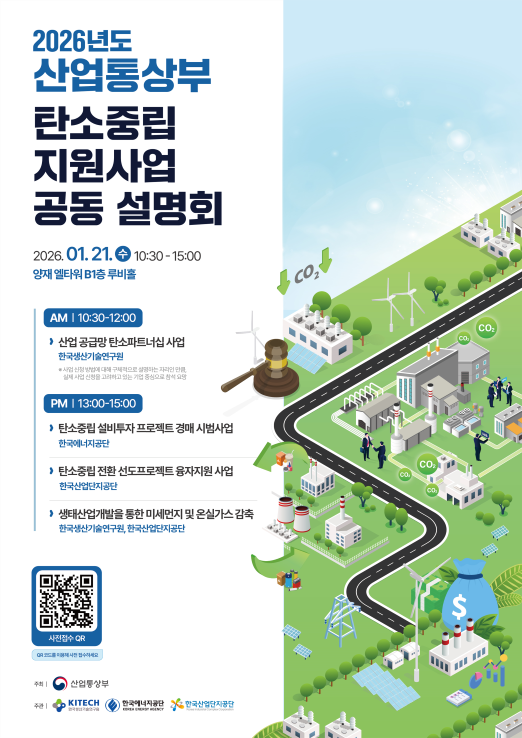 ์ฐ์ ๋ถ, ์ฌํด ์ต์ยท๊ฒฝ๋งคยทํํธ๋์ญ ๋ฑ 2,500์ต ์ ๊ท๋ชจ ๋ค์ํ ์ง์์ฌ์ ์ถ์ง ๊ธฐ์ ์ฐธ์ฌ ์ข ํฉ ์ค๋ช ์์ธ โ์ฐ์ ๋ถ ํ์์ค๋ฆฝ ์ง์์ฌ์ ์ค๋ช ์๋ฃโ ์ ์ยท๋ฐฐํฌ ์ฐ์ ํต์๋ถ(์ฅ๊ด ๊น์ ๊ด, ์ดํ ์ฐ์ ๋ถ)๋ ํ์์ค๋ฆฝ์ด ์ฐ์ ๊ฒฝ์๋ ฅ์ ์ข์ฐํ๋ ํต์ฌ ๊ณผ์ ๋ก ๋ถ์ํ ์ํฉ์์, ์ฐ๋ฆฌ ๊ธฐ์ ๋ค์ ์ฒด๊ณ์ ์ธ ๊ทธ๋ฆฐ ์ ํ(GX)์ ๋ท๋ฐ์นจํ๊ธฐ ์ํด ์ฌํด ์ด 2,500์ต ์ ๊ท๋ชจ ๊ธฐ์ ์ฐธ์ฌํ(๊ณต๋ชจํ) ํ์์ค๋ฆฝ ์ง์์ฌ์ ์ ๋ณธ๊ฒฉ ์ถ์งํ๋ค. ์ฌํด ์ฐ์ ๋ถ์ ์ง์์ฌ์ ์ ์๊ธ ์กฐ๋ฌ, ์ค๋น ํฌ์, ๊ณต๊ธ๋ง ํ๋ ฅ ๋ฑ ์ฐ๋ฆฌ ๊ธฐ์ ๋ค์ด ํ์์ค๋ฆฝ ์ดํ ๊ณผ์ ์์ ๋ถ๋ชํ๋ ์ค์ง์ ์ธ ์ด๋ ค์์ ๊ทน๋ณตํ๋ ๋ฐ ์ด์ ์ ๋ง์ท๋ค. ์ฃผ์ ์ฌ์ ์ผ๋ก๋ โฒํ์์ค๋ฆฝ ๋ถ์ผ ์ ์ ํฌ์ ๊ธฐ์ ์ ๋์์ผ๋ก ์ฅ๊ธฐยท์ ๋ฆฌ(โ25.12์ ๊ธฐ์ค 1.3%) ์ต์๋ฅผ ์ ๊ณตํ๋ โํ์์ค๋ฆฝ ์ ํ ์ ๋ ํ๋ก์ ํธ ์ต์์ฌ์ โ(1,700์ต ์), โฒ์ ๋ถ ์์ฐ ๋๋น ํ์ ๊ฐ์ถ ํจ๊ณผ๊ฐ ํฐ ์ค๋นํฌ์ ํ๋ก์ ํธ๋ฅผ ๊ฒฝ๋งค ๋ฐฉ์์ผ๋ก ๋ฐ๊ตดยท์ง์ํ๋ โํ์์ค๋ฆฝ ์ค๋นํฌ์ ํ๋ก์ ํธ ๊ฒฝ๋งค์ฌ์ โ(์ ๊ท, 250์ต ์), โฒ์ ํ ๊ณต๊ธ๋ง์ผ๋ก ์ด์ด์ง ๊ธฐ์ ๋ค์ด ํ๋ ฅํ์ฌ ํจ๊ป ํ์ ๋ฐ์๊ตญ์ ์ค์ด๋ โ์ฐ์ ๊ณต๊ธ๋ง ํ์ ํํธ๋์ญโ(์ ๊ท 105์ต ์) ๋ฑ์ด ์๋ค. * ์ฌ์ ๋ณ ์ธ๋ถ ๋ด์ฉ์ ๊ฐ ์ฌ์ ์ ๋ชจ์ง ๊ณต๊ณ ์๊ธฐ(โ26.1~2์์ ์ง์ค)์ ๋ง์ถฐ ๋ณ๋์ ๋ณด๋์๋ฃ๋ฅผ ํตํด ์ถ๊ฐ ์๋ด ์์ ๋ํ ์ฐ์ ๋ถ๋ ์๊ธฐ ์ฌ์ ๋ค์ ํฌํจํ์ฌ ์ฌํด ์ถ์งํ๋ ์ด 16๊ฐ ํ์์ค๋ฆฝ ์ง์์ฌ์ ์ ๋ํ โ์ค๋ช ์๋ฃ*โ๋ ํน๋ณํ ์ ์ยท๋ฐฐํฌํ์๋ค. ํด๋น โ์ค๋ช ์๋ฃโ๋ ์ง์ ๋์๊ณผ ์ง์ ๋ถ์ผ์ ๋ฐ๋ผ ์ฌ์ ๋ณ ์ฃผ์ ๋ด์ฉ, ์ง์ ๋์, ์ ์ฒญ ์ ์ฐจ, ๋ด๋น์ ์ฐ๋ฝ์ฒ ๋ฑ์ ์ฒด๊ณ์ ์ผ๋ก ์ ๋ฆฌํ์ฌ, ๊ทธ๊ฐ ๊ฐ๋ณ ์ฌ์ ๋ณ๋ก ํฉ์ด์ ธ์๋ ์ ๋ณด๋ฅผ ๊ธฐ์ ๋ค์ด ํ ๋์ ํ์ธํ ์ ์๋๋ก ๊ตฌ์ฑํ์๋ค. * ๏ฝข2026๋ ๋ ์ฐ์ ํต์๋ถ ํ์์ค๋ฆฝ ์ง์์ฌ์ ์ค๋ช ์๋ฃ๏ฝฃ : 16๊ฐ ์ง์์ฌ์ ์ด 2,500์ต ์ ๊ท๋ชจ - ์ง์ ๋์ : ์ค์ยท์ค๊ฒฌ๊ธฐ์ ๋์, ์ ์ฒด๊ธฐ์ ๋์, ๊ธฐ์ ๊ตฐ ์ปจ์์์ ๋์ ๋ฑ - ์ง์ ๋ถ์ผ : ์ค๋นํฌ์, ์ฐ๊ตฌ๊ฐ๋ฐ, ์ํ๊ฒฝ์ , ๊ตญ์ ๊ฐ์ถ, ์จ์ค๊ฐ์ค ์ธ๋ฒคํ ๋ฆฌ, ๊ต์กยท์ปจ์คํ , ์ธํ๋ผ ๋ฑ โณโ์ฐ์ GX ํ๋ฌ์ค R&D', '๊ธ๋ก๋ฒ ํ์๊ท์ ๋์ ์์์ฐ๊ณํ R&D'๋ ์ ๊ท ๊ธฐ์ ๊ฐ๋ฐ ๊ณผ์ ์ ์ ๊ฐ๋ฅ โ PDF ํ์ผ ๋ฑ์ผ๋ก ์ ์ํ์ฌ ์จยท์คํ๋ผ์ธ์ ํตํด ์์ฝ๊ฒ ๋ฐฐํฌยทํ๋ณด ๊ฐ๋ฅ ํนํ, ์ด๋ฒ ์ค๋ช ์๋ฃ ์ ์์ ์ง๋ 11์ โ2035 NDC ์ดํ์ ์ํ ์ฐ์ ๊ณ ๊ฐ๋ดํโ(โ25.11.25, ์ฐ์ ๋ถ ์ฐ์ ์ ์ฑ ์ค์ฅ ์ฃผ์ฌ)์์ ๊ธฐ์ ์ ๊ฑด์๋ฅผ ์ ๊ทน ์์ฉํ ๊ฒ์ผ๋ก์, ์ ๋ถ ์ง์์ฌ์ ์ ๋ํ ๊ธฐ์ ๋ค์ ์ ๋ณด ์ ๊ทผ์ฑ๊ณผ ํ์ฉ๋๋ฅผ ๋ํญ ๊ฐ์ ํ ๊ฒ์ผ๋ก ๊ธฐ๋๋๋ค. ์ฐ์ ๋ถ ๋ฐ๋์ผ ์ฐ์ ์ ์ฑ ์ค์ฅ์ โ์ต๊ทผ 2035 NDC(๊ตญ๊ฐ์จ์ค๊ฐ์ค๊ฐ์ถ๋ชฉํ)๊ฐ ์๋ฆฝ๋๊ณ ํ์์ค๋ฆฝ์ด ์ฐ์ ์ ๋ฉ๊ฐํธ๋ ๋๋ก ์๋ฆฌ์ก์ ๋งํผ, ์ฐ๋ฆฌ ์ฐ์ ๊ณ์ ํ์์ค๋ฆฝ ์ ์ ํฌ์๊ฐ ๊ทธ ์ด๋ ๋๋ณด๋ค ์ค์ํด์ก๋คโ๊ณ ๊ฐ์กฐํ๋ค. โํนํ, ์ ๋ณด์ ์ฌ๊ฐ์ง๋์ ๋์ฌ์๋ ์ง์ญ์์ฌ ๋ฐ ์ค์ยท์ค๊ฒฌ๊ธฐ์ ๋ค์ด ๋ณด๋ค ์ ๊ทน์ ์ผ๋ก ์ ๋ถ์ ์ง์์ฌ์ ์ ํ์ฉํ ์ ์๋๋ก ํน๋ณํ ์ค๋ช ์๋ฃ๋ ๋ง๋ค์๋คโ๋ฉฐ โ์ฌํด ์ฐ์ ๋ถ์ 2,500์ต ์ ๊ท๋ชจ ํ์์ค๋ฆฝ ์ง์์ฌ์ ์ ์ ๊ทน ์ฐธ์ฌํด์ค ๊ฒโ์ ๋น๋ถํ์๋ค. ์ด์ ๊ด๋ จ ์ฐ์ ๋ถ๋ ์ค๋ 1์ 21์ผ, ๊ธฐ์ ๋ค์ ๊ด์ฌ์ด ๋ง์ ์ฃผ์ 4๊ฐ ์ง์์ฌ์ *์ ๋์์ผ๋ก โ2026๋ ๋ ์ฐ์ ๋ถ ํ