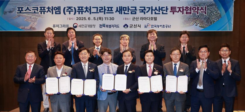 협약식에는 김관영 전북특별자치도지사, 김경안 새만금개발청장, 강임준 군산시장, 엄기천 ㈜포스코퓨처엠 대표이사, 김정훈 ㈜퓨처그라프 대표이사 등이 참석했다.