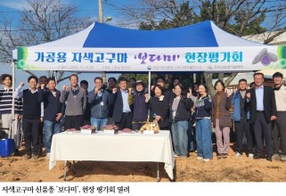 전남 무안에서 농가·가공업체 등 관계자 참석저장성 우수하고 안토시아닌 총량 60% 이상 증가안토시아닌 많아 음료·떡·페이스트 등 가공 특성 우수 농촌진흥청(청장 이승돈)은 저장성·가공적성이 뛰어난 자색고구마 신품종 ‘보다미’* 현장 평가회를 11월 5일 전라남도 무안군 운남면에서 개최했다.*“한번 ‘보’면 ‘다’시 보고 싶은 고구마’”라는 의미로 지어졌으며, “보라색 안토시아닌 색소를 많이(‘多’) 함유한 자색고구마라는