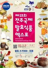 국내외 22개국 326개사 참가, 발효식품의 세계 트렌드 한눈에전통주특별전, 어린이뮤지컬 등 콘텐츠 다양화로 관람객 만족도 제고 전북특별자치도는 10월 30일부터 11월 3일까지 전주월드컵경기장 일원에서 ‘제23회 전주국제발효식품엑스포’를 개최한다. ‘발효, K-푸드의 미래’라는 슬로건으로 열리는 이번 엑스포는 국내외 22개국, 326개 기업이 참가하여 전 세계 다양한 발효식품을 한자리에서 만나볼 수 있다. 전