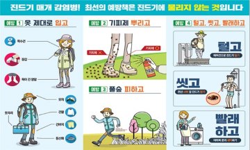 긴팔·긴바지 착용, 기피제 사용 등 예방수칙 실천 당부 가을 수확철을 맞아 야외 농작업이 늘면서 진드기 매개 감염병 발생 위험이 높아지고 있다. 전북특별자치도농업기술원(원장 최준열)은 예방수칙을 철저히 지켜 피해를 최소화해 줄 것을 당부했다. 진드기 매개 감염병은 세균이나 바이러스를 가진 진드기에 물려 감염된다. 국내 주요 감염병으로는 쯔쯔가무시증과 중증열성혈소판감소증후군(SFTS) 등이 있다. 질병관리청 통
