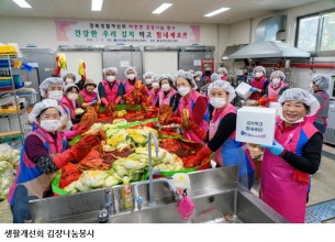 경북의 산불과 수해 피해 시군 회원을 위한 김장나눔, 따뜻한 이웃 사랑 실천 한국생활개선경상북도연합회(회장 김숙자)는 13일 경상북도농업기술원 농산물가공지원센터에서 경북 북부 산불과 침수 피해를 입은 지역의 회원을 돕기 위해 김장 나눔 행사를 진행했다. 이번 김장 나눔 행사는 재난 피해 회원들이 조속히 생업 복구에 집중하고 대부분 임시주택에 거주하고 있어 겨울철 식탁의 주요 반찬인 김장을 하기 어려운 상황을 고려해