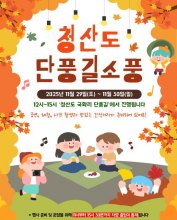 11월 29일부터 30일 이틀간 행사 진행, 체험 거리 풍성 우리나라에서 단풍이 가장 늦게 드는 슬로시티 청산도 국화리에서 11월 29일부터 30일까지 이틀간 ‘단풍길 소풍’ 행사를 개최한다. 가을 산책 명소로 꼽히는 청산도 국화리 단풍길은 슬로길 9코스로 상수원 입구에서부터 지리 청송 해변까지 약 3.2km이며, 도보로 약 1시간 정도 소요된다. 특히 진산리에서 지리까지 약 3km 도로 양쪽에 약 30년 된
