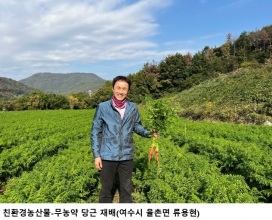 류용현 씨, 지역 농가와 학교 급식용 친환경 재배지력관리·친환경 해충방제…연간 50톤·9천만원 소득 전라남도는 11월 친환경농산물로 ‘여수 당근’을 선정했다고 밝혔다. 당근은 베타카로틴이 풍부해 눈 건강과 면역력 강화에 도움을 주며, 식이섬유가 많아 장 건강에도 좋은 대표적 건강채소다. 특히 여수에서 재배되는 신흑전5촌 품종은 국내 최대 주산지인 제주 당근과 달리 단단한 조직감과 높은 저장성을 지녀, 학교급식과 대