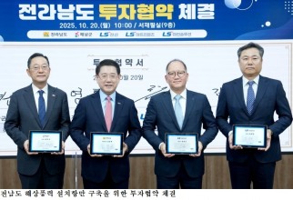 에너지 앵커기업 LS 유치로 해상풍력산업 도약 전환점 전라남도는 20일 도청 서재필실에서 국내 전선업계 1위 기업 ㈜LS전선의 자회사인 ㈜LS머트리얼즈, ㈜LS마린솔루션과 해상풍력 전용 설치항만 조성, 케이블 설치선 건조 등을 위한 투자협약을 했다. 협약식에는 김영록 전남도지사, ㈜LS전선의 구본규 대표이사, 이상호 재경구매본부장/CFO, 홍영호 ㈜LS머트리얼즈 대표이사, 김병옥 ㈜LS마린솔루션 대표이사, 명현관 해